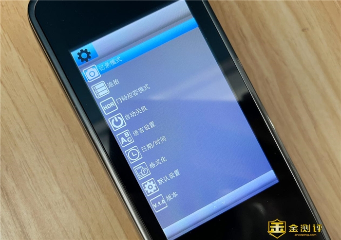 内面板细节,顶部是一块4英寸的高清屏幕,可以让我们清晰的看到门外状态。而且该屏幕底端有三个触控键,可进入摄像头、访客记录以及设置三个功能项中。其中在设置中可以实现门铃模式、连拍、门铃应答模式的调整,增加了使用的灵活性。