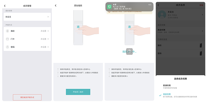 前文题到过云米App最主要的单位就是家庭,可以为每个家庭加入不同的成员,设置为不同的角色,针对云米Super 2智能门锁,可以通过成员管理添加不同的成员,满足不同家庭成员的使用。