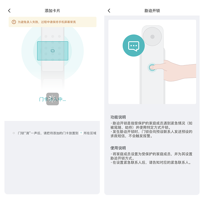 前文提到过,云米Super 2智能门锁随锁附赠了2张门卡,通过云米App录入后就可以通过门卡进行开锁,门卡存在的意义是避免了老年人和小孩的指纹不清晰或者缺失无法识别的情况,当然这种情况也可以选择通过密码开锁。