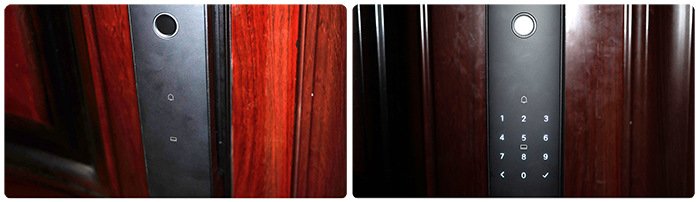 云米Super 2内外锁都比较厚实,原因在于外锁体包含了一颗摄像头,内锁体包含了一块4英寸屏幕,其实这也就是我们日常使用的猫眼屏。内外锁体整体呈黑色,除了一些信息标记以及物理开锁孔、云米logo,整体比较沉稳大气。