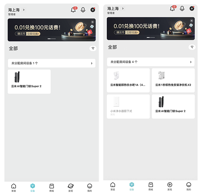 与米家不同的是,云米App将“家庭”这个单位作为主体,因为云米提供的是一站式全屋智能解决方案,所以一个家庭的智能产品能够更好的融为一个智能体,提供智能化的操作与服务。