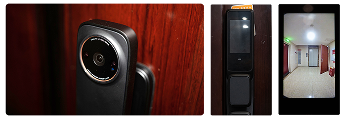 与摄像头对应的则是内锁部分的4英寸大屏,妥妥的一款智能猫眼啊。这个摄像头可以适应多种环境,保证画面的清晰可见。