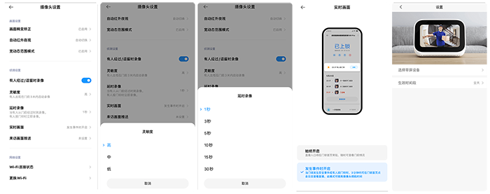 比如延时录像的时间设置,有些时候门口只是路过一个人,并没有在门口停留,这部分信息其实属于冗余信息,所以可以提高录像的延时,避免不必要的空间浪费;