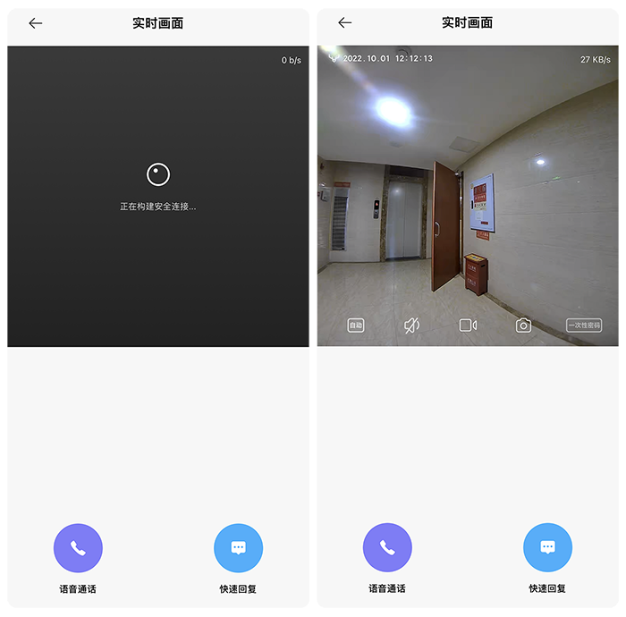 你以为这个猫眼就这么点功能吗?NONONO。当猫眼开启实时监控后,可以在任意时间打开监控(米家APP里叫“直播”),这个时候有趣的功能就来了,首先就是类似于小区车库进门的访客电话系统一样,可以进行单向可视化的通话,也就是访客只能听到你的声音,你却可以看到访客的视频信息。