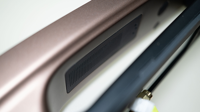 鹿客S50M Pro内外锁都是一体式的设计,从侧面看整体呈流线型,弧度不会夸张,看起来没有区别。内外锁主体部分都是采用的磨砂设计,免去了指纹印刷机的烦恼。