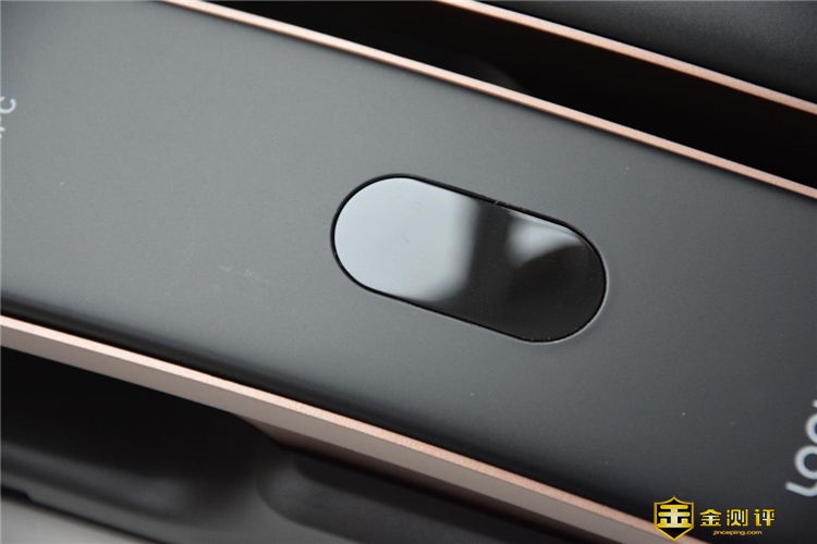 然后外面板上还有NFC识别区域,椭圆形隐藏设计的钥匙插孔,下方则是鹿客品牌Logo。