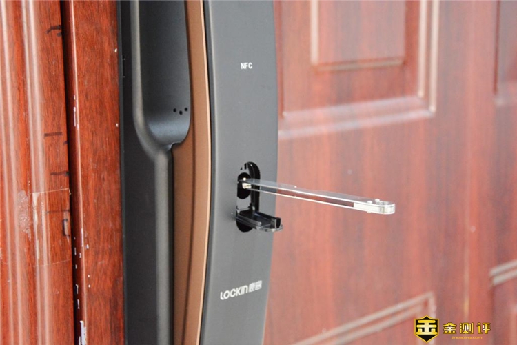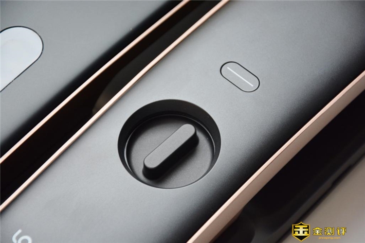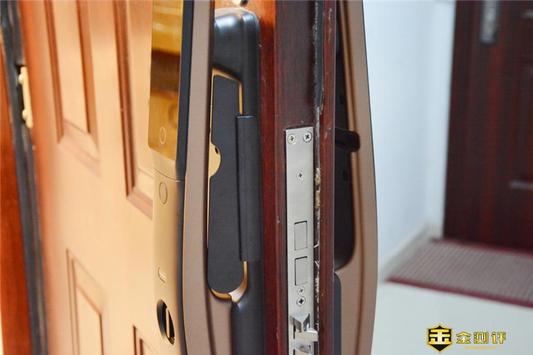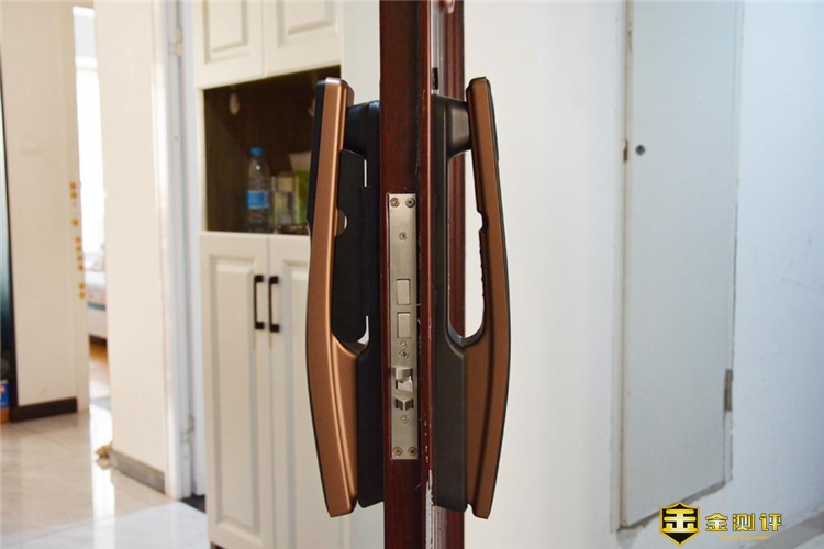 主要来看看内外面板,它们均采用流线型美学设计,机身拥有一个恰到好处的弧度,颜值时尚,手感非常舒适。而面板表面采用的是铝合金材质,搭配黑色与琥珀金配色,看起来非常高端,不管安装在什么材质的门体上,都是品质的象征。