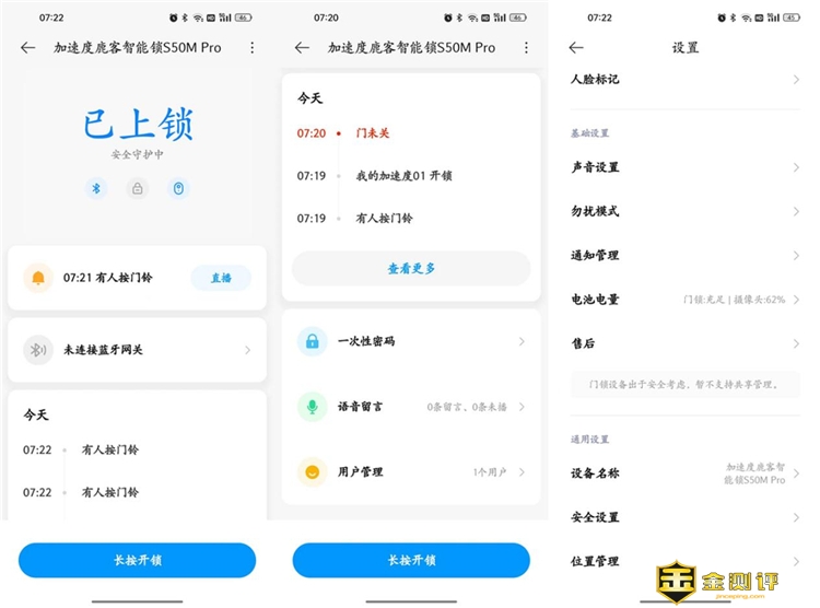 下载相关APP,在手机上就能实时查看鹿客智能锁S50M Pro的状态,开锁记录、管理密码、声音设置、电池电量等,一站式管理非常省心。