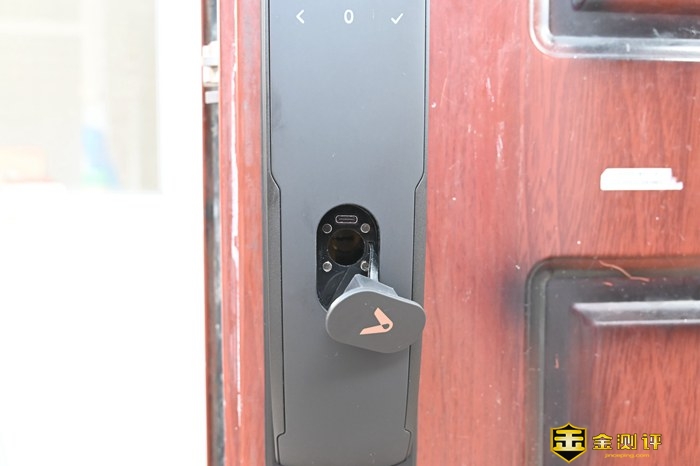 有了指纹、门卡、密码这几种解锁方式,实体钥匙基本就用不到了,不过遇到门锁没电的情况,还是用钥匙开锁更快捷。云米Super 2提供了2把备用钥匙,我们要把它们放在安全的位置,最好不要都锁在家里。在外侧面板LOGO处有隐藏式保护盖,下压即可打开,里面就是钥匙孔,还有一个type-C型的紧急供电口。