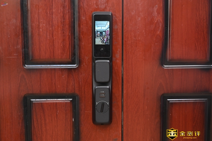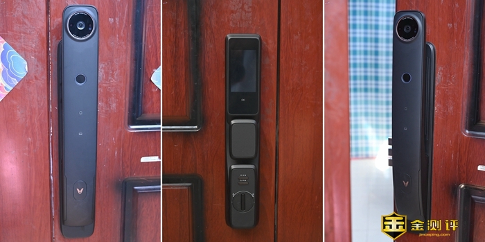 云米Super 2是一款带摄像头的智能门锁,外侧面板顶部就是摄像头的位置,这是一颗分辨率1080P,有着161°超级广角的摄像头,可以清楚看到外面的情况,配合镜头周围的红外灯和感光传感器,摄像头可以感知人或物的接近,提前做出反应,夜间同样有清晰的画面。