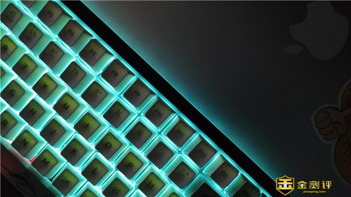 雷柏MT510Pro多模式背光机械键盘采用PBT材质五面热升华技术键帽,色彩和材质都透出满满的复古风格,PBT键帽是继ABS键帽以来制作成本更高一些的材质键帽,材质本身就具有高耐热性、强韧性、耐疲劳性,而且可以自润滑、低磨损。具有极强的耐热水、碱类、酸类、油类,PBT材质键帽耐磨性很好,其较高的耐磨性在键盘上甚至体现出很长时间不易脱色不打油的特性,也就是说在夏天手上油腻腻时,上手键盘永远爽干的感觉,硬度在手感方面可能会感觉略硬,但在实际加工浸染颜色图案时,色彩还原度高不易掉色,字符颜色鲜亮,手感更加细腻。大家可以看看键帽侧面字体的整体色调与透润度。