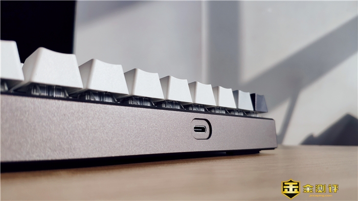 Type-C接口设计在键盘左后侧面,充电+有线键盘使用,内置4000mAh锂电池,至高约225小时无线续航。
