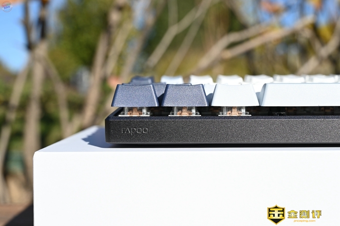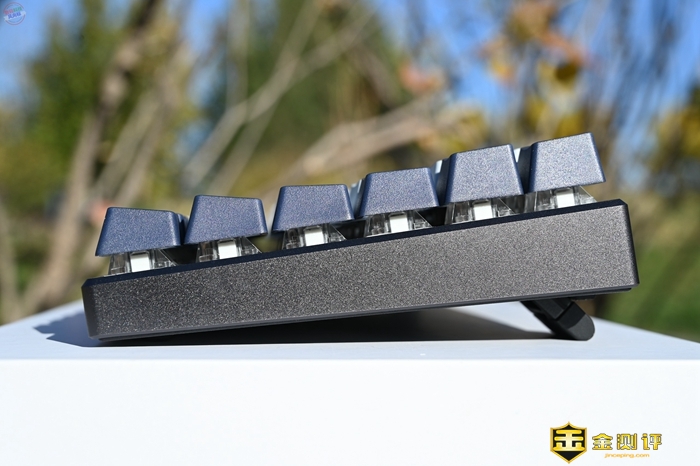 这款键盘用的是铝合金边框和底盖,看上去很有质感,而且键盘的边框部分经过CNC切边和喷砂氧化工艺处理,不仅手感十分细腻,而且视觉效果也很不错。