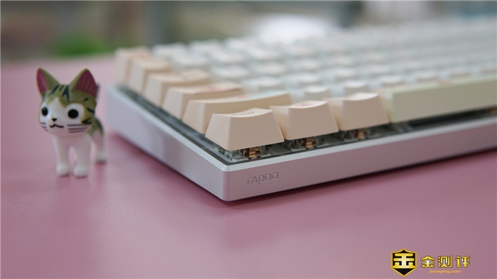 一般女生的需求都是小巧方便,外观可爱,毕竟颜值高就是生产力。于是笔者选了雷柏最新推出的MT510PRO喵萌假期多模机械键盘送给她。84小配列+喵萌键帽+无线连接的组合,相信女神肯定会喜欢这份办公好物。