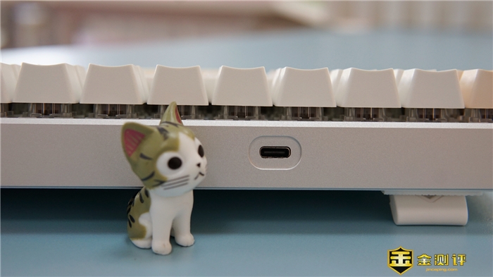 键盘的Type-C接口设置在铝合金顶框左侧,连接有线模式直连即用。但比较遗憾的是,键盘通体并没有设置到2.4G接收器的收纳口,希望以后能够加上。