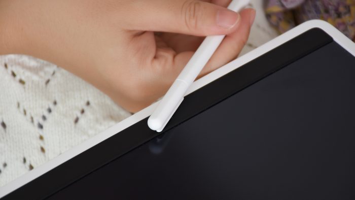 屏幕表面是磨砂雾面质感,有细微的颗粒,与笔尖接触会有少许阻尼感,模拟出类似在纸张表面书写的真实感。当然,用指甲或者其他物体也能正常书写感应,但需要注意与屏幕接触的物体不能太过尖锐,否则容易划伤屏幕。