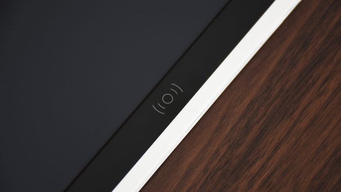 仔细观察不难发现,四周的白色边框微微凸起与屏幕表面,顶部还有大约1公分左右的黑色区域,中间内嵌有清屏感应装置。因此上边框实则要比其它三边更宽一些,只是做了“黑化”处理,视觉上更美观。