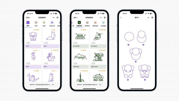 如果是家里小孩子涂鸦绘画使用,渐变色的优势就会更明显,让画作显得更生动,富有想象空间。为了激发孩子的创作天性,还可以通过微信小程序“简笔世界”跟着里面的教程练习简笔画,假期在家也能学习手绘创作。
