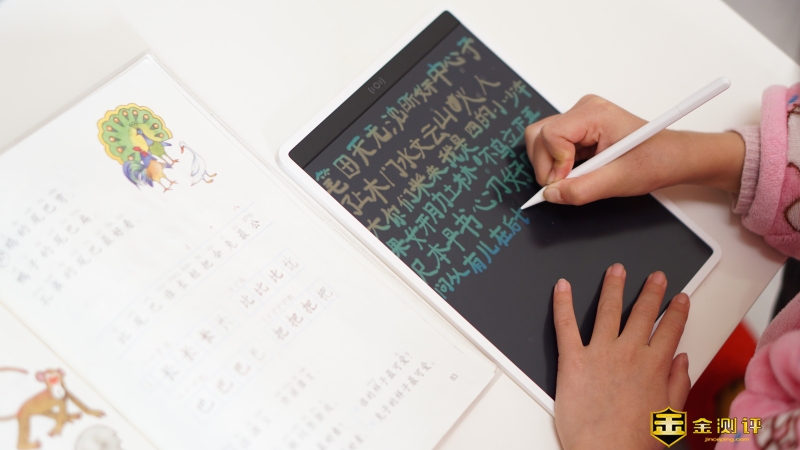 新款小黑板采用了分区显色设计的定制彩色液晶膜,一笔即可呈现出黄绿蓝三种颜色的彩色线条,颜色更鲜明,显示清晰、醒目,兼具传统纸张的真实书写感受与液晶屏的顺滑体验。