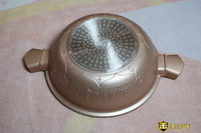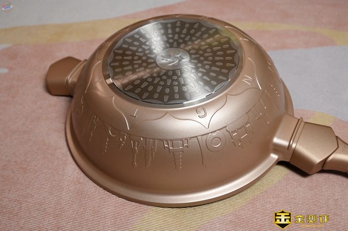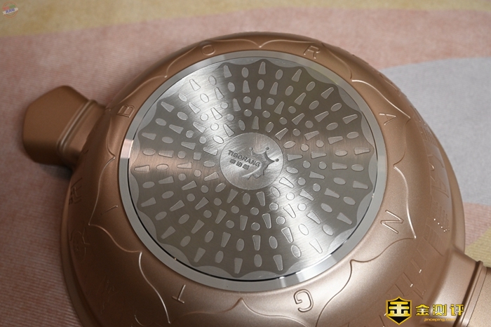 在帝伯朗多用锅的底部,可以看到一种纹理特殊的锅底,这个位置采用了一种水波纹五层覆底结构,聚热效果出色,平时只需中小火就可以满足炒菜、蒸煮的需要,省电省气效果很不错。