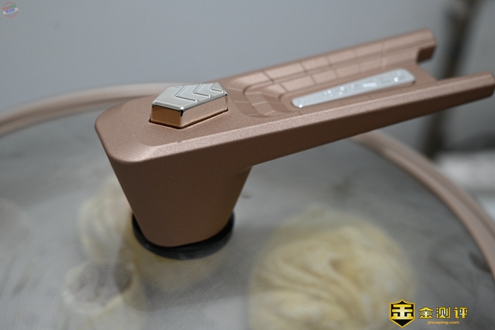 在锅盖的设计上,帝伯朗也有一个巧妙的设计,锅盖外圈采用硅胶设计,可以牢牢吸附在锅体上,带来17Kpa微压循环,大大提升了食材蒸煮的效率,当然了,使用时也要注意,开盖时需要按一下锅盖把手上的按键排气。