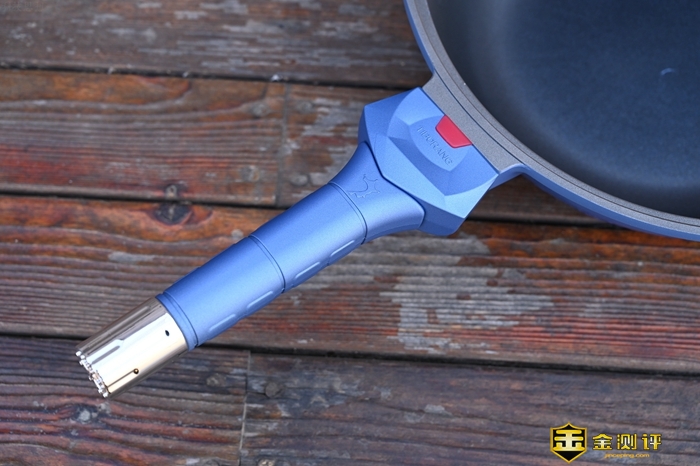 看看多用锅的手柄这里,设计也很巧妙,它可以免工具安装,拆卸都很方便。手柄和锅耳、锅盖把手用的都是电木材质,手感很细腻,而且隔热防烫效果好,炒菜时非常安全。