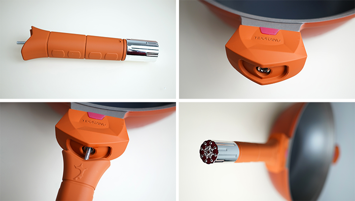 如果需要实现炒的功能,则需要把加长的炒锅把手拧紧即可。