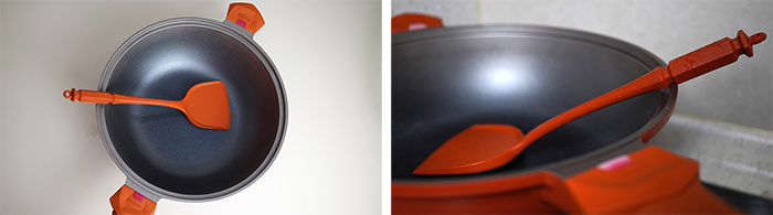 前面体验锅铲时还未发现,国产的路灯设计恰好可以将锅铲临时的卡在锅沿处,以免整个掉进国内产生麻烦。不过还是前文观点,要是能够提供一套配对的工具就好了。