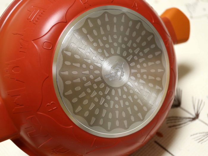 锅底从里到外有5层保护层,分别是加固基底层、钛介质聚能层、高纯度铝合金基底层、矿物粒子导热层、晶相导磁层,久烧不易发黄发黑。锅体底部环形聚热能快速导热,在烹饪时中小火就能满足日常需求。它完全不挑炉具,煤气灶、电磁炉、陶瓷炉、电炉等都可以使用!