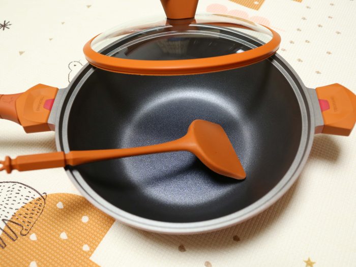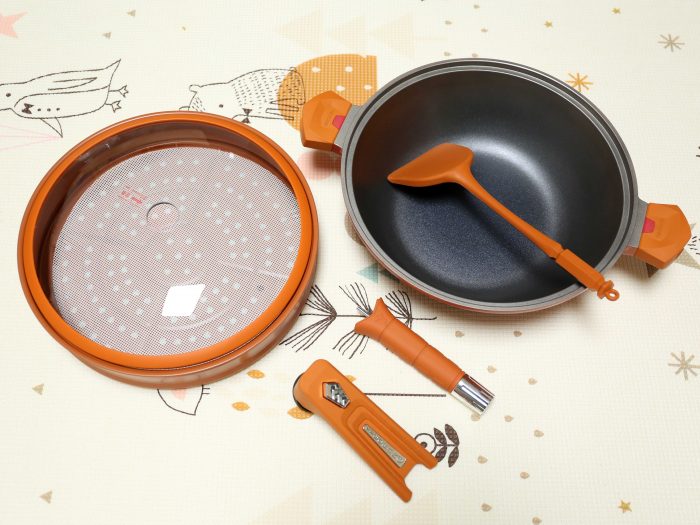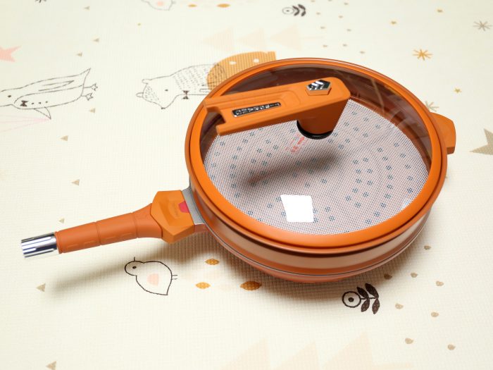 组装好的锅体,整体颜值真的非常高,它一共有五种配色:火焰橙、马铁金、维多娜绿、琉璃蓝和杏仁粉。我选的这款是火焰橙,感觉用这个颜色的锅做饭,食物都会变得更加可口。