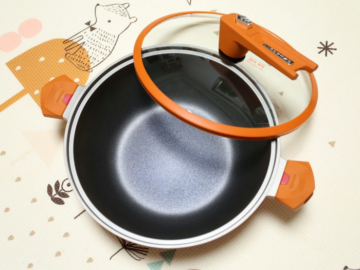 当不安装把手的时候,双耳设计还可以当火锅使用。蒸、煮、炒、煎、炸、烤、微压、火锅真正做到一锅八用!
