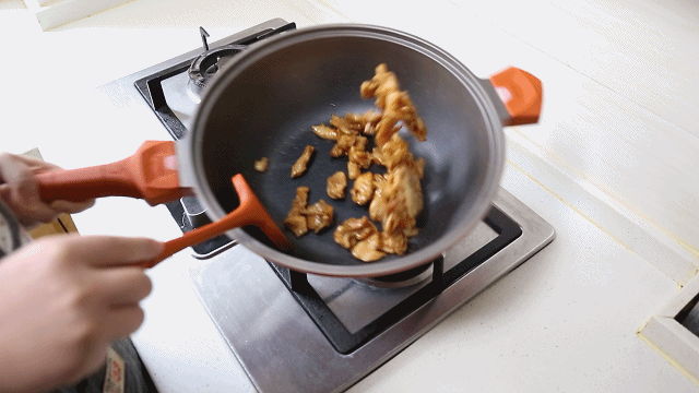 之前家里的老锅每次炒肉的时候都会黏锅底,换成这口帝伯朗缤纷龙纹鏊之后,可以看到在炒肉片的时候,也没有任何粘锅的痕迹,同时因为锅体非常轻,女孩子甚至可以单手可颠锅。