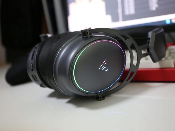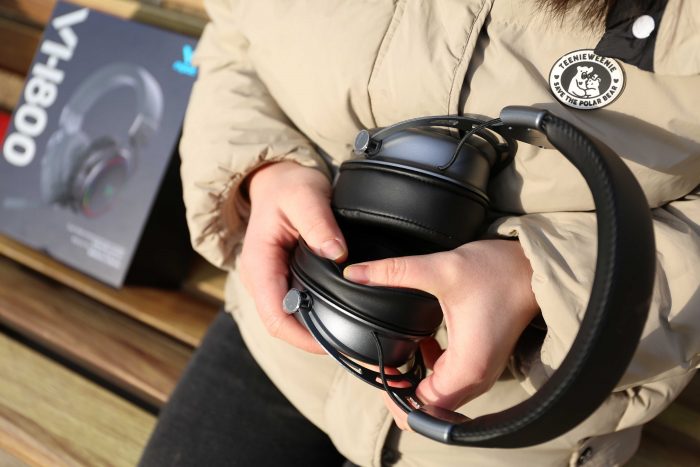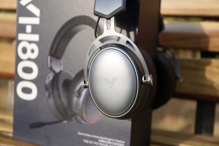 这款雷柏的VH800整体采用了银+黑的配色,耳罩呈椭圆形的设计再加表面略微的磨砂质感,整体非常漂亮,中间配有雷柏的“V”形LOGO,开机后配合上炫彩RGB灯光,各级的质感更进一步提升