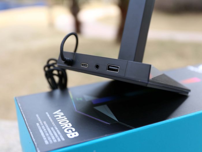 作为一款耳机支架,最大的作用当然就是用来放置耳机,不过这款雷柏的耳机支架,确有点“不务正业”打开包装后,我们看到这款支架后面还有一根USB连接线。