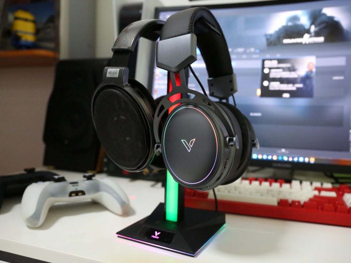 作为一款大耳机,在平时不用时如果放在桌面上不但影响美观,还会非常占地方,雷柏也是相当贴心,针对这款RGB耳机,也推出了相应的RGB支架。