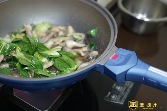 帝伯朗多用锅的手柄起来非常普通但内藏玄机,手柄具有感温变色功能,烹饪中手柄不同颜色代表了不同的火候,温度达到140℃以上时会变成白色,特别适合对于火候掌控一般的用户使用。