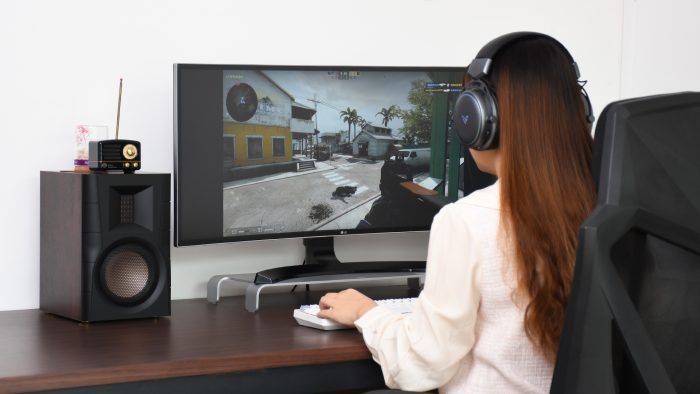 比如在玩吃鸡类游戏的时候,声音对于玩家的帮助就很大,需要通过声音来判断敌人所处的位置,包括方向和远近距离等等。VH800的宽声场优势就非常明显,能够更准确的呈现不同方向和位置发出的声音,优化低频加强脚步声、优化高频帮助辨别枪声,帮助玩家做到“听声辨位”。