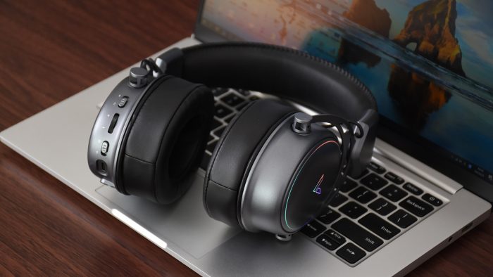 左侧耳罩侧边集中分布有按键和接口,包含电源键、麦克风接口、Type C充电接口、灯光开关、音量加减按键和模式按键。正常使用的时候抬起手腕就可以够到按键,操作也很方便。