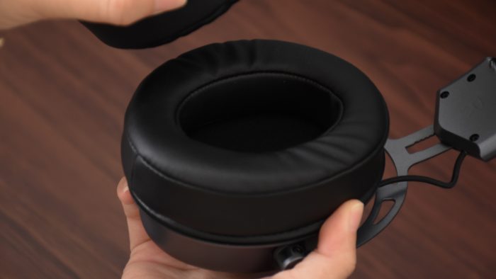雷柏VH800的耳罩比较宽大,正常佩戴的时候能够将整个耳朵包进去,避免挤压耳朵,同时起到物理降噪的作用。耳罩内侧同样采用柔软的记忆棉填充,起到缓冲的作用,外侧是蛋白皮材质包裹,与皮肤接触温润舒适,且具有良好的透气性。