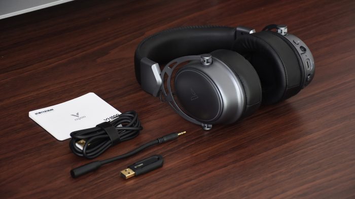 包装内容比较丰富,除了耳机之外,还附送有USB-Type C充电线、麦克风、无线接收器和使用说明书。