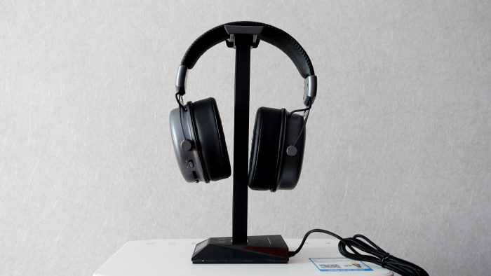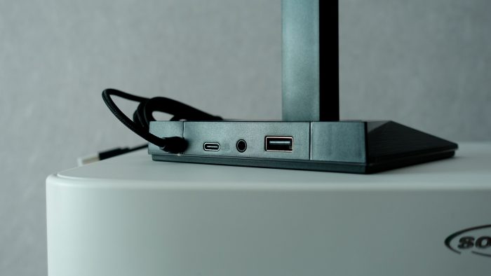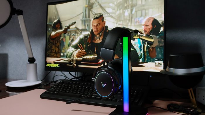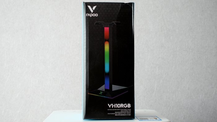 这次是套装体验,所以雷柏VH800还配备了一个雷柏VH10RGB拾音律动幻彩RGB游戏耳机支架,支架外包装在运输过程中收到轻微的挤压,稍微有些变形,但不影响使用。