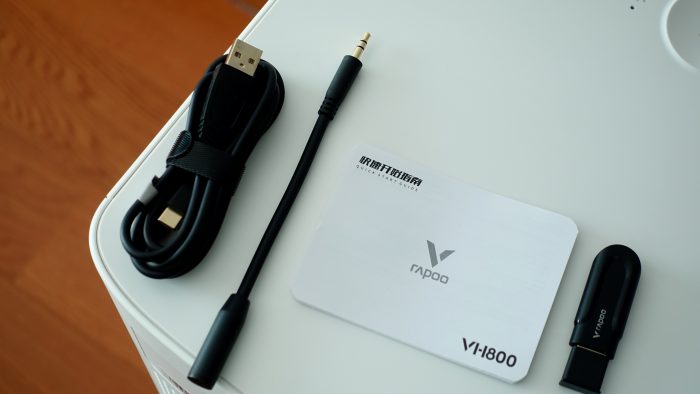 雷柏VH800配件为:Type-C充电线、可拆卸麦克、使用使用说明书、接收器等。