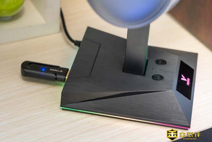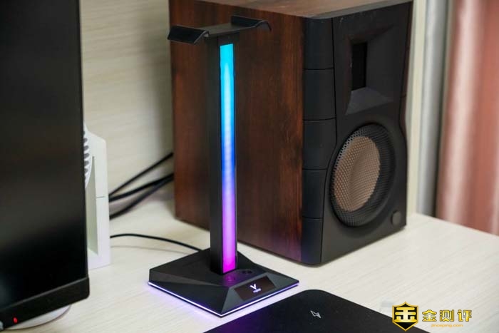 不仅有炫酷的RGB灯效,甚至还有USB置声卡功能和USB分线器的的功能,说它是一个游戏耳机支架,也可以说它是一个USB扩展坞。