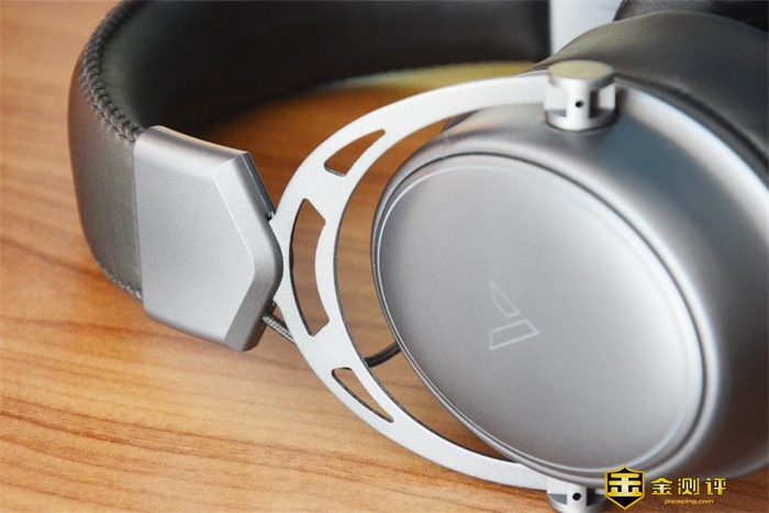 而椭圆形的大耳罩外壳是金属材质,它与头梁之间的连接部分采用镂空设计,金属外壳表面则经过了磨砂喷漆处理,质感很出众。
