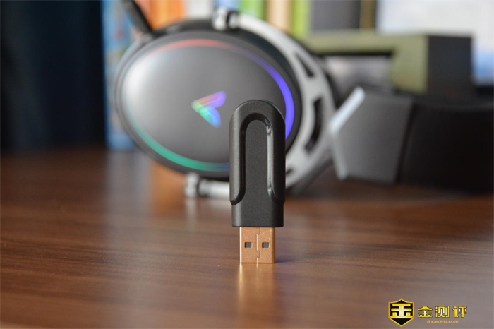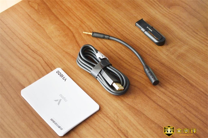 比较亮眼的是,雷柏VH800双模无线RGB游戏耳机不仅提供有长杆麦克风、USB-C数据线、说明书配件,还有一个USB接收器。