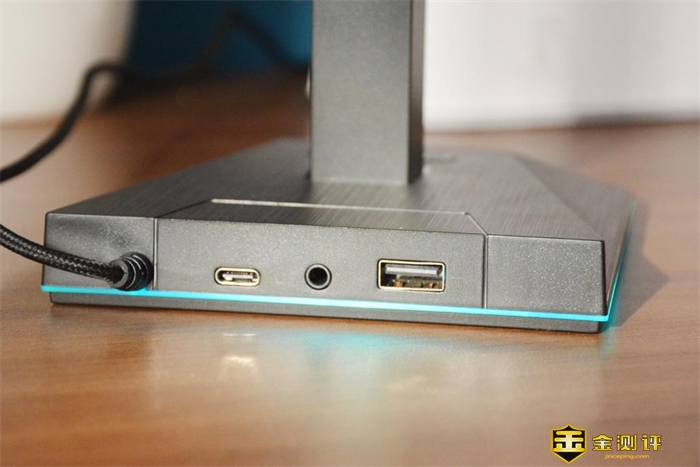 耳机支架的后侧面则配备了一个USB2.0接口、一个3.5mm音频口、一个USB-C接口,很显然不同的拓展接口可连接不同的设备,使用更方便。