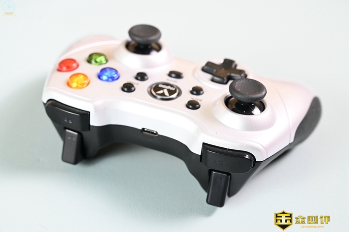 在手柄正面,可以看到ABXY按键采用了彩色的设计,看起来非常活泼,实际使用中,手柄的按键、摇杆都有稳定及时的反馈,相比同价位的手柄质量更加出色,相对也更加耐用。