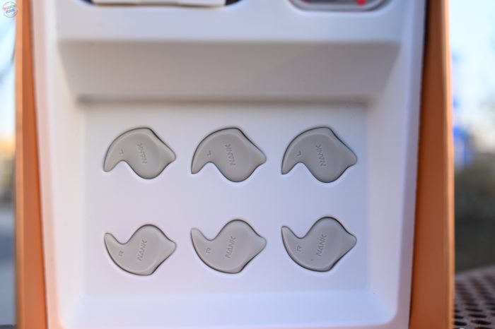 另外有趣的一点是,南卡Runner Pro 4的配件里面包括了一种叫做音质增强器的小工具,可以有效提升听音乐的体验,这个小东西分为三种尺寸,需要戴在耳朵上使用,感觉和入耳式耳机的耳塞类似,但因为不入耳的佩戴方式,它在提升听感的同时不会影响耳机佩戴的舒适度。
