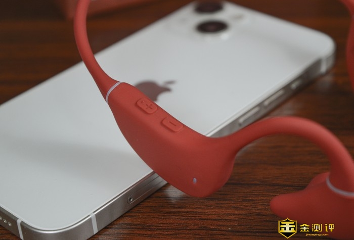 耳机对称式设计,覆裹了一层符合国际标准的高等级亲肤硅胶,既保证了佩戴的舒适性,又能在运动跑跳状态下保持紧贴状态,并且此次的贴肤扬声器部位面积和外形有些许增大优化透气性和柔软度以及低敏等表现也相当优异,这样的设计在佩戴的贴合感及舒适性上都有了一定的提升,并减轻了骨传导耳机普遍存在的漏音问题。