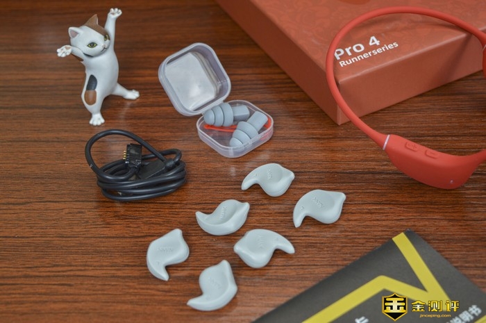 Runner Pro4 某东当前活动价1398,算是高端骨传导耳机定位。包装方面很是紧凑,配件除了磁吸式充电器、三幅音质增强耳塞、使用说明书外还附赠了一副用于静音沉浸式佩戴的硅胶隔音耳塞。